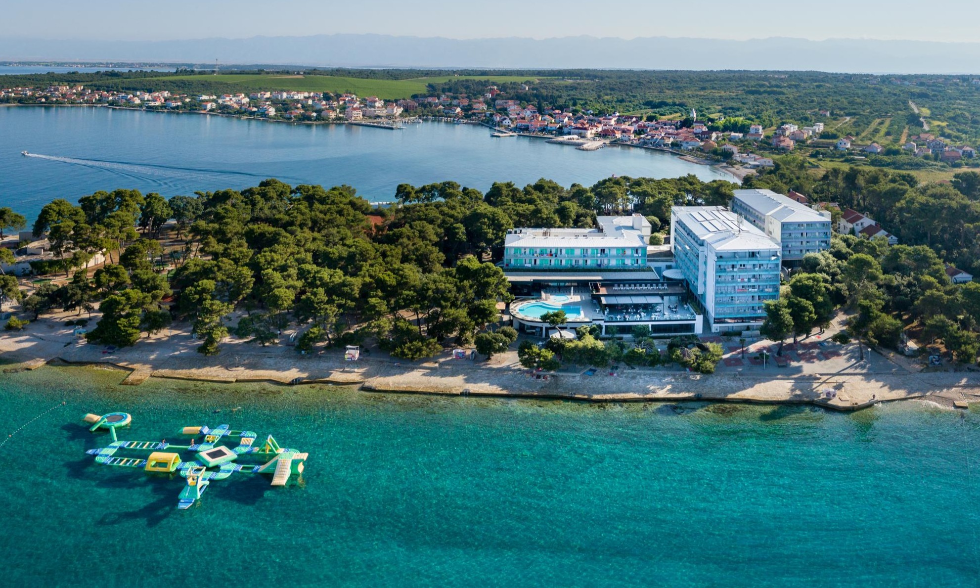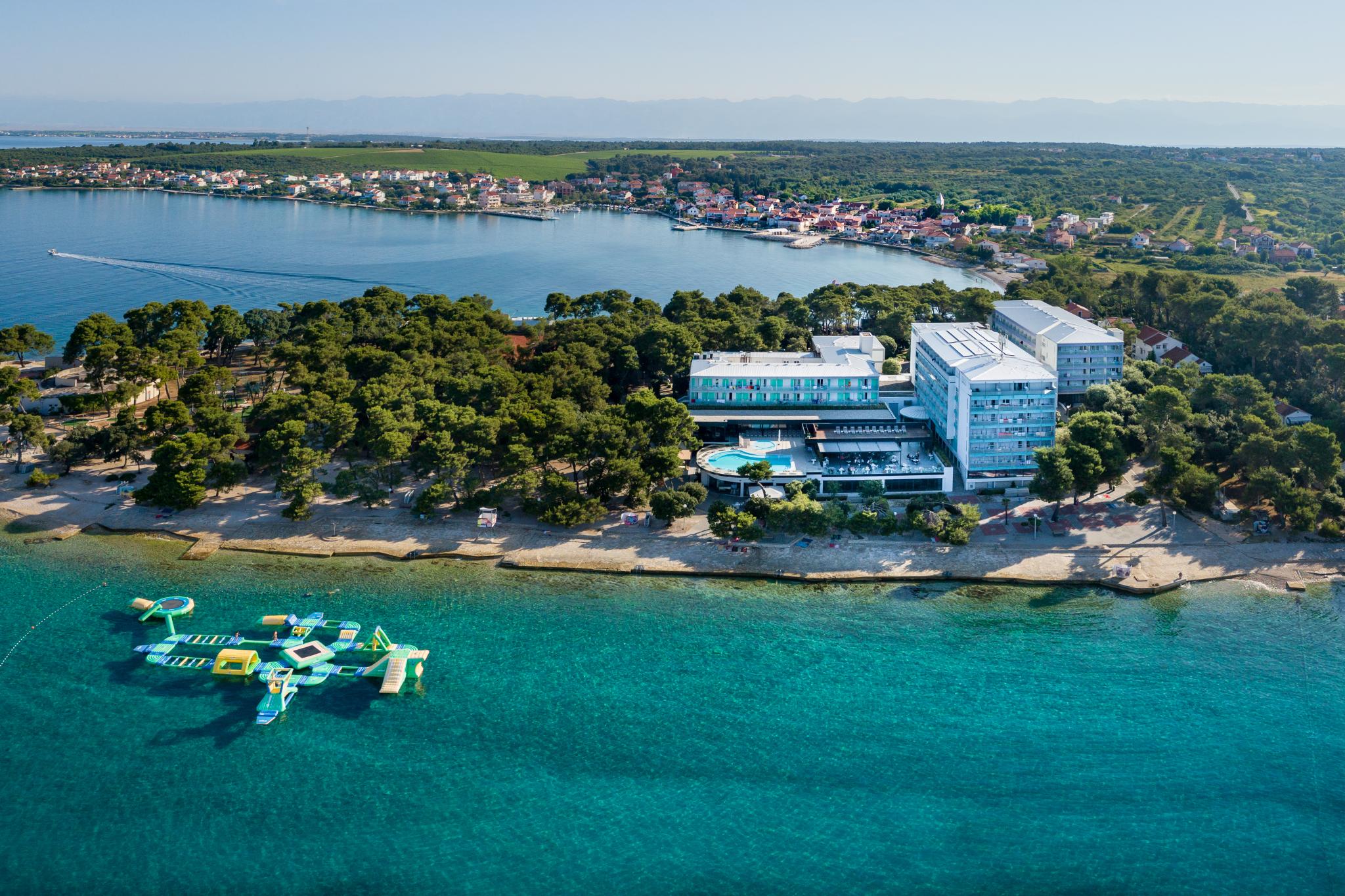 Verbringen Sie entspannte Urlaubstage an der kroatischen Adriaküste im idyllischen Ferienort Petrčane. Direkt an einer kleinen Halbinsel gelegen, bietet das komfortable Hotel Pinija einen traumhaften Blick auf das tiefblaue Meer und die vorgelagerten Inseln. Umgeben von duftenden Pinienwäldern und kristallklarem Wasser ist das Hotel der ideale Ort für Erholung, Badevergnügen und mediterranes Lebensgefühl. Genießen Sie sonnige Tage am hoteleigenen Strand, entspannen Sie im großzügigen Wellnessbereich oder erkunden Sie die malerische Umgebung. Die historische Stadt Zadar mit ihrer Altstadt, der Meeresorgel und der berühmten „Begrüßung der Sonne“ ist nur wenige Kilometer entfernt und lädt zu Ausflügen ein.