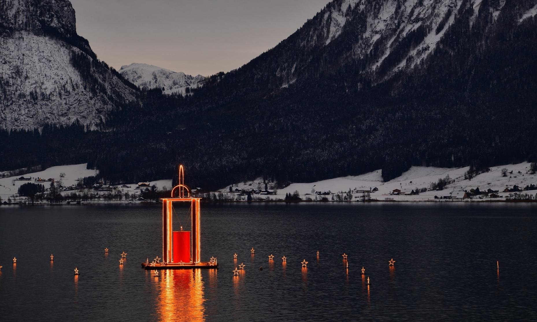 Das Friedenslicht im See, Kerzenschein, offene Feuerstellen, traditionelle Kläng...